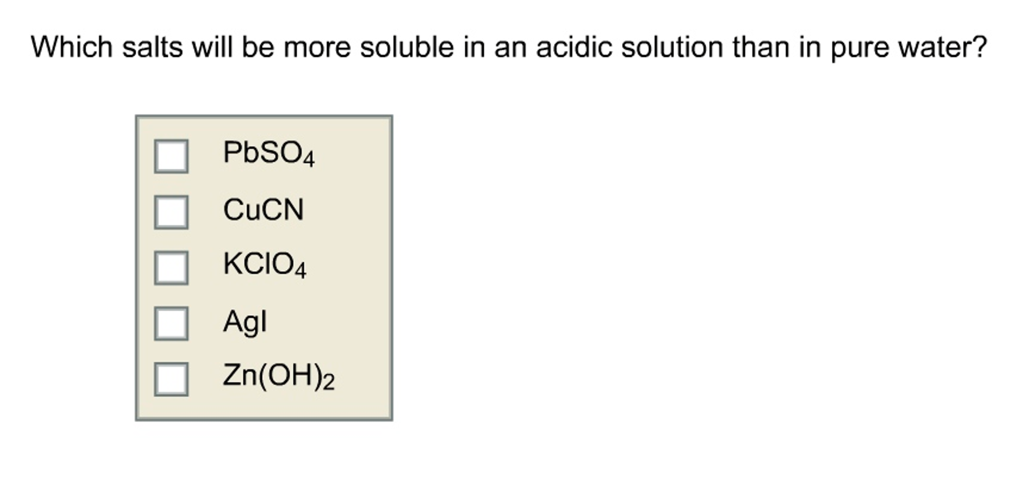 Which Of The Following Salts Are More Soluble In Acidic Solution Than